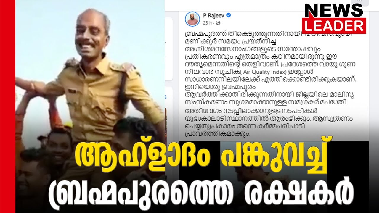 12 ദിവസവും 24 മണിക്കൂര് സമയം പ്രയത്നിച്ച അഗ്നിശമനസേനാംഗങ്ങളുടെ സന്തോഷം ഈ ദൗത്യം എത്ര കഠിനമായിരുന്നുവെന്നതിന് തെളിവാണെന്ന് മന്ത്രി തന്റെ ഫേസ്ബുക്ക് പോസ്റ്റില് കുറിച്ചു. പ്രദേശത്തെ വായു ഗുണ നിലവാര സൂചിക ഇപ്പോള് സാധാരണനിലയിലേയ്ക്ക് എത്തിക്കൊണ്ടിരിക്കുകയാണെന്നും അദ്ദേഹം ചൂണ്ടിക്കാട്ടി.