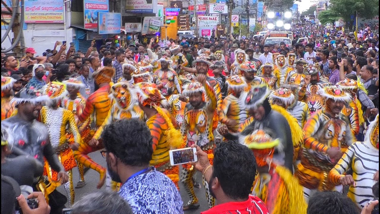 അഞ്ചുദേശങ്ങളില് നിന്നായി 250 ലേറേ പുലികളാണ് രാജവീഥിയില് എത്തിയത്. നടുവിലാല് ഗണപതിക്ക് നാളികേരമുടച്ച് പാരമ്പര്യത്തനിമയില് തന്നെ പുലിക്കളിസംഘങ്ങള് വടക്കുന്നാഥനെ വലംവച്ചു. രാജ്യത്തെ ദുഃഖാചരണത്തിന്റെ ഭാഗമായി ഔദ്യോഗിക ചടങ്ങുകളൊന്നും ഉണ്ടായില്ല