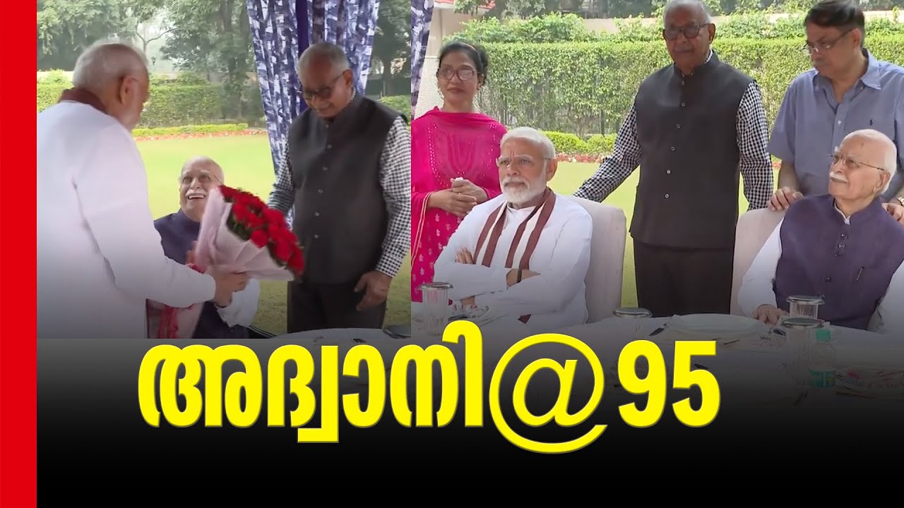 റോസാപ്പൂക്കളടങ്ങിയ ബൊക്കെ സമ്മാനിച്ചാണ് നരേന്ദ്ര മോദി അഡ്വാനിയെ ജന്മദിനാശംസകള് അറിയിച്ചത്. അരമണിക്കൂറോളം നേരം മോദി അഡ്വാനികൊപ്പം ചെലവഴിച്ചു. ചിത്രങ്ങള് പങ്കുവച്ച് രാജ്നാഥ് സിങ്ങ് ട്വീറ്റ് ചെയ്തു. കേന്ദ്രമന്ത്രിമാരായ അമിത് ഷാ, നിതിന് ഗഡ്കരി, ബിജെപി ദേശീയ അധ്യക്ഷന് ജെ പി നഡ്ഡ തുടങ്ങിയവരും മുതിര്ന്ന നേതാവിന് ജന്മദിനാശംസകള് നേര്ന്നു. 1927ല് ഇപ്പോള് പാകിസ്ഥാന്റെ ഭാഗമായ കറാച്ചിയിലാണ് ലാല് കൃഷ്ണ അഡ്വാനിയുടെ ജനനം.